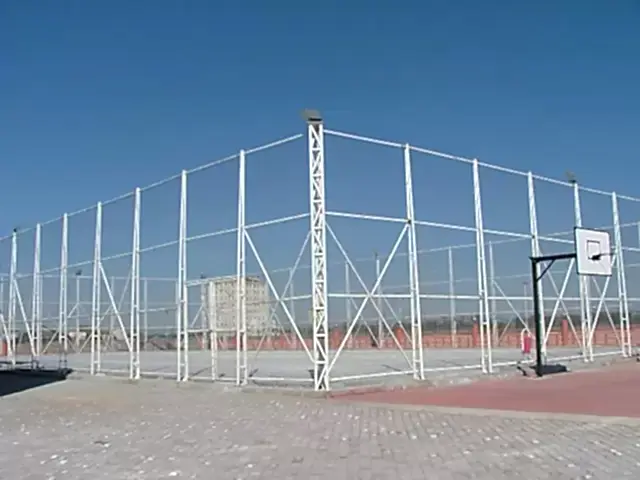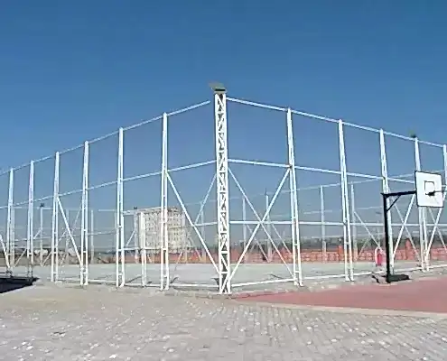 Spor sahaları genelde 30 m x 50 m ebadında olur. Yükseklik 6 -7 -8 metre olup her 15 metrede destek atılır. Dikey Borular 76 x 2.5 mm (3 kuşak atılır) antipas atıldıktan sonra boyama işlemi yapılır. Tel örgü bölümü Pvc kaplı tellerden 3 mm veya 3.5 mm kalınlığında, 50 x 50 göz aralığı örgü telleri kullanılarak tel örgü işlemi tamamlanır.